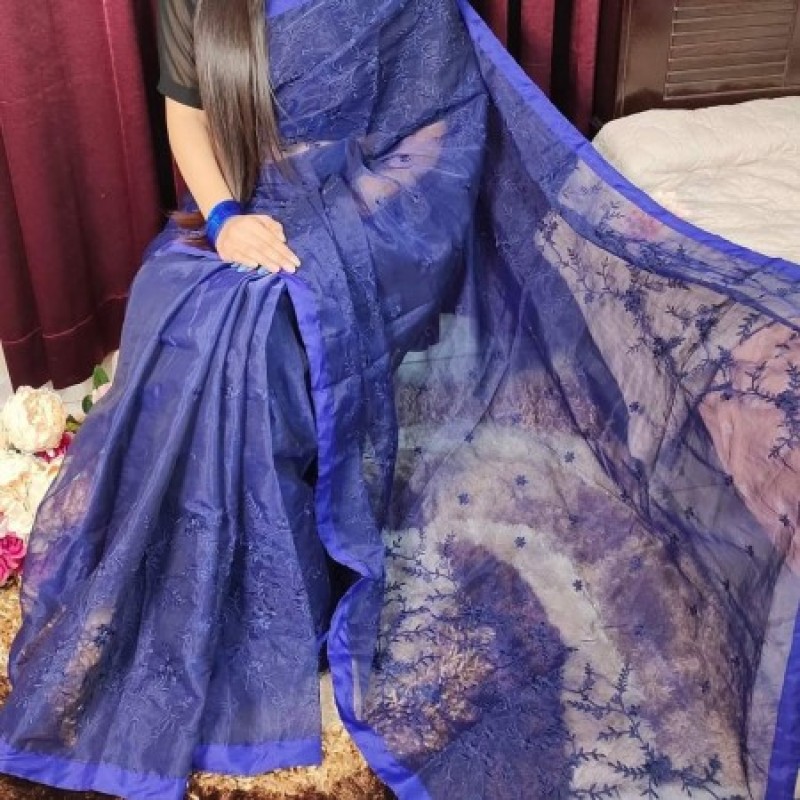 হাফসিল্ক এম্বোডাইরি শাড়ি।