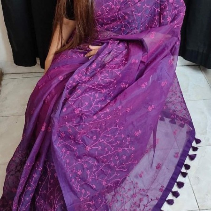 হাফসিল্ক এম্বোডাইরি শাড়ি।